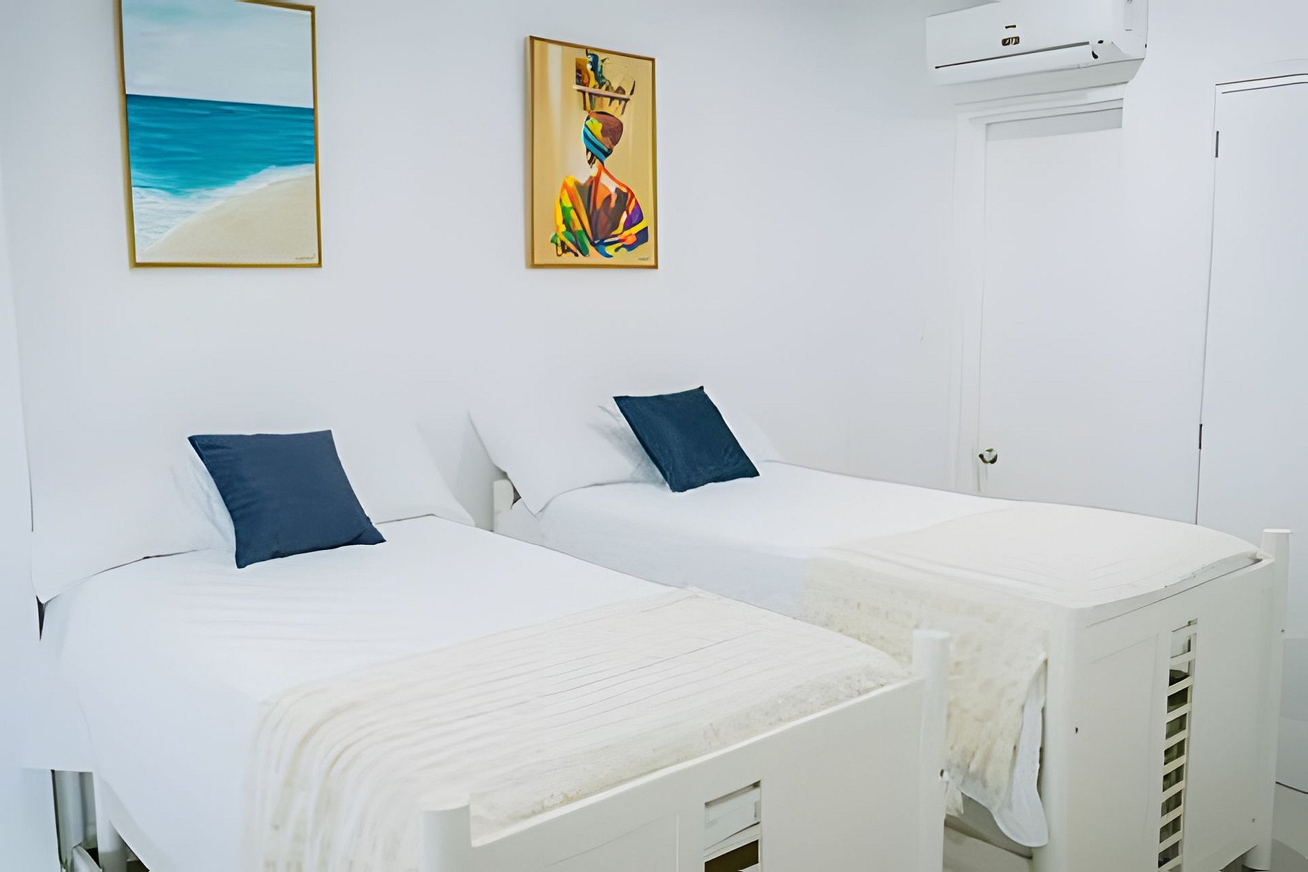 Despierta con el sonido del mar y una vista increíble al Caribe desde tu balcón. Este apartamento tiene el espacio y la comodidad perfecta para relajarte: 2 habitaciones, 2 baños, cocina equipada, sala amplia y todo lo que necesitas para sentirte en casa, incluso lavadora-secadora. La zona de La Boquilla es tranquila, segura y muy especial. Aquí tienes playa justo al frente, brisa fresca todo el día y acceso directo desde el edificio. Además, estás a solo 15 minutos del Centro Histórico de Cartagena, donde te esperan restaurantes, museos y la magia colonial de la ciudad amurallada. Ideal para descansar, trabajar remoto o simplemente disfrutar del mar con los que más quieres.