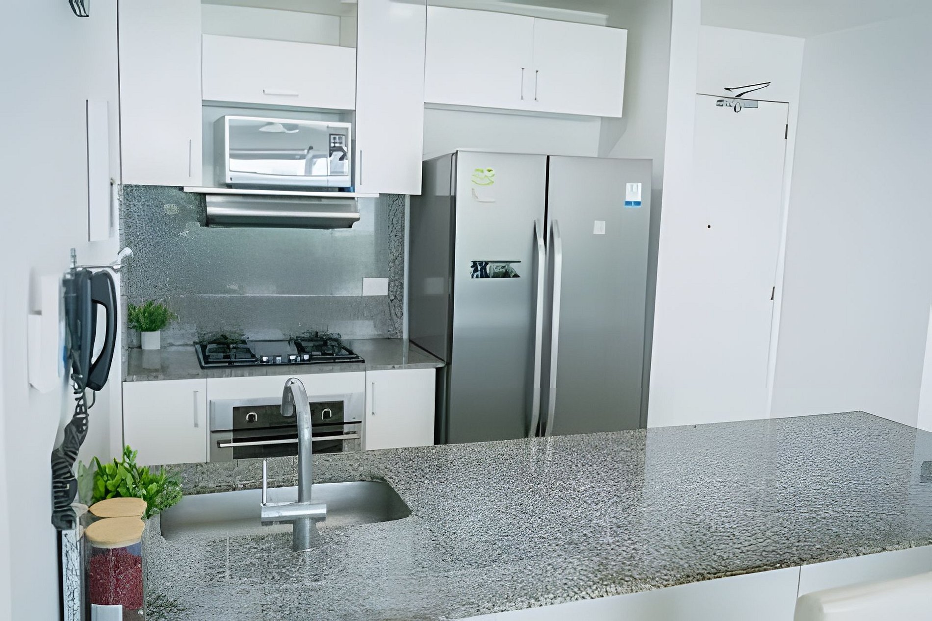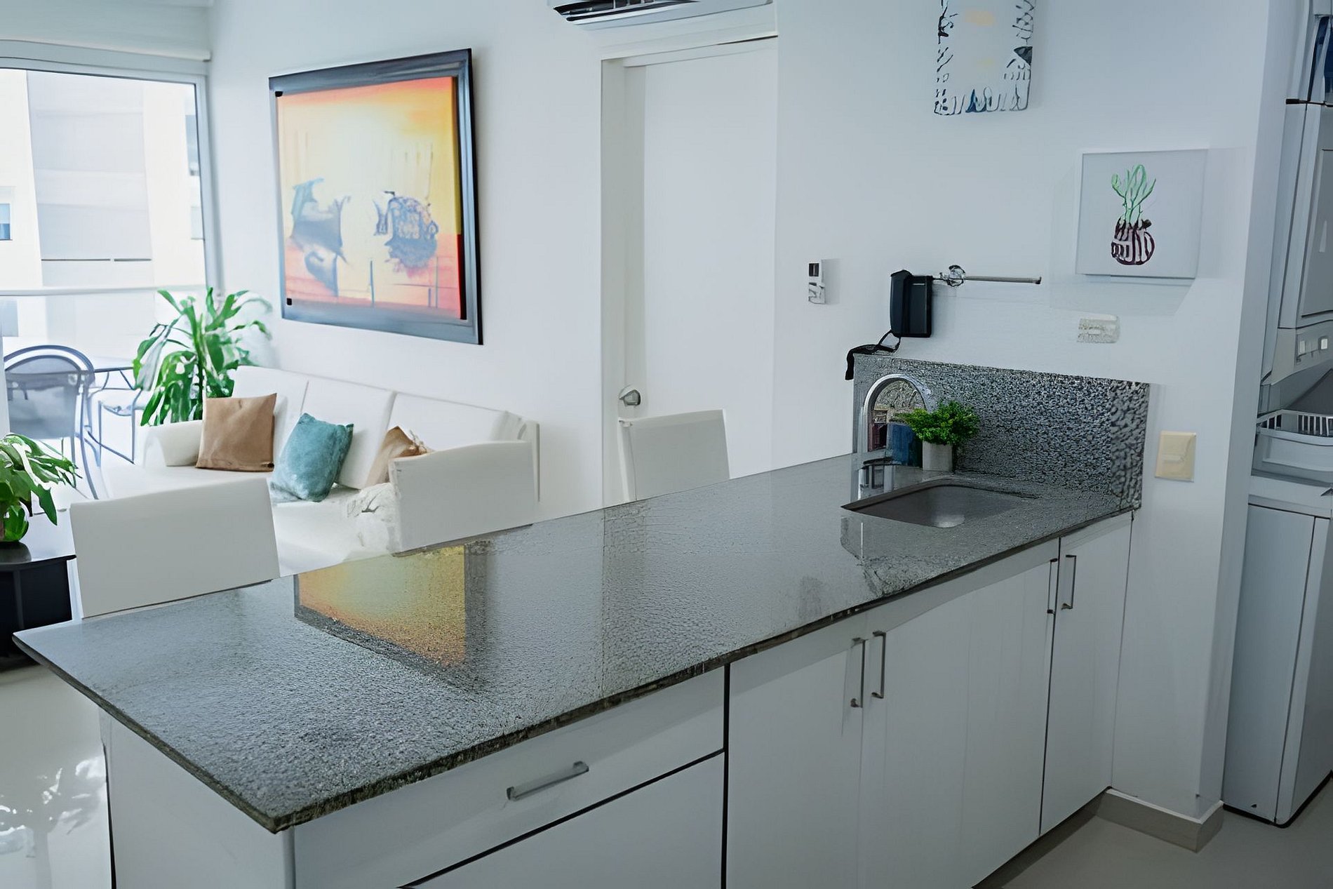 Nuestro apartamento está totalmente equipado para una estadía cómoda y práctica. Contamos con todos los utensilios de cocina esenciales, incluyendo licuadora, cafetera, microondas, nevera y vajilla completa. Además, dispones de una lavadora-secadora ideal para estancias más largas o familias.