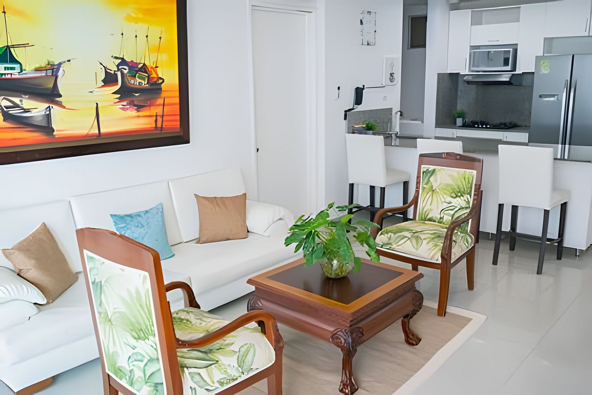 Cuenta con 2 habitaciones, 2 baños, 4 camas, sala y cocina abiertas, y un balcón donde podrás disfrutar de atardeceres mágicos. Aunque su estilo es clásico, el espacio es cómodo, luminoso y muy ventilado.