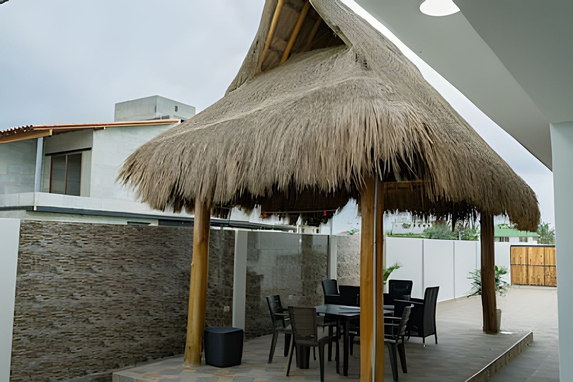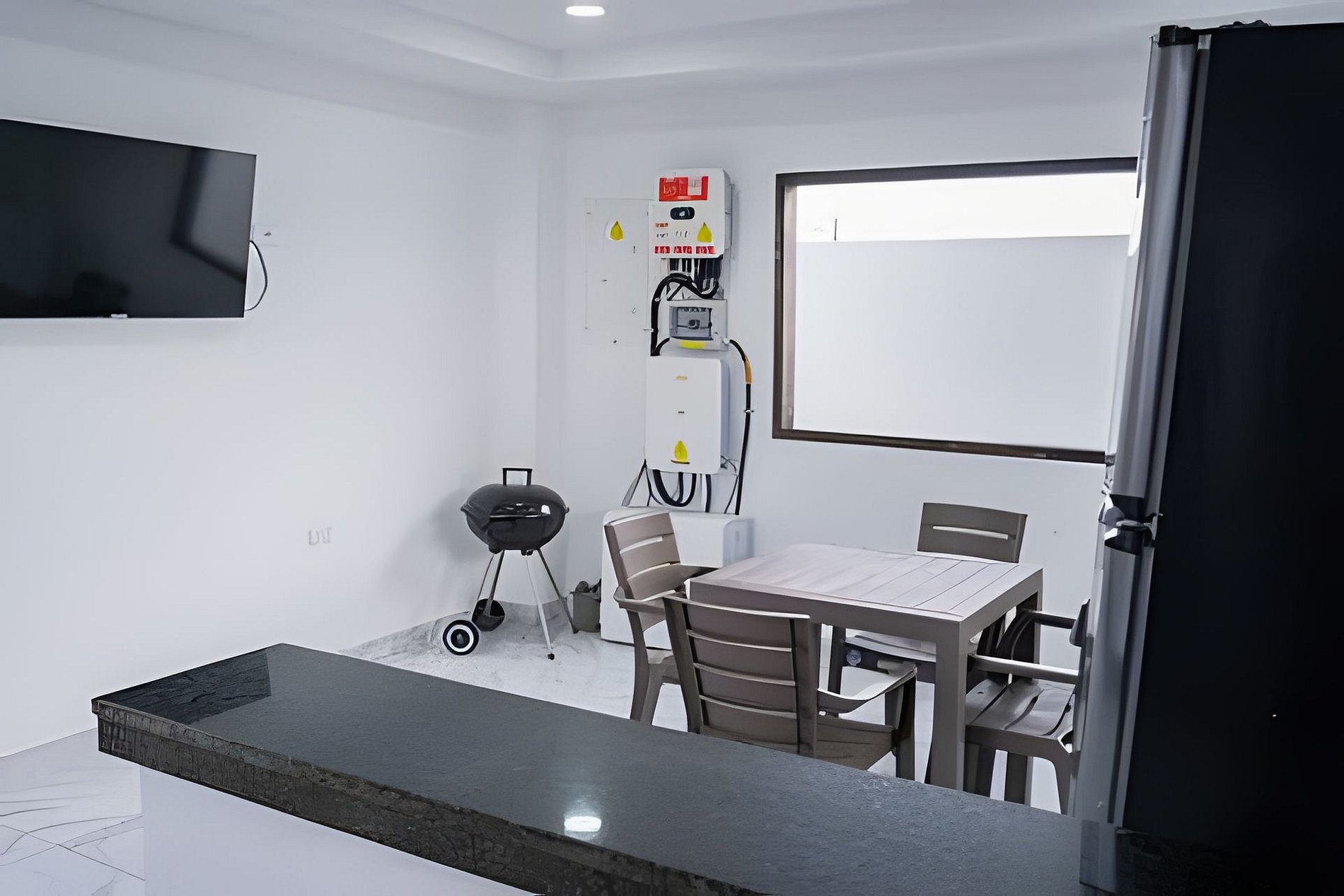 Escápate a una cabaña cerca al mar en el exclusivo condominio Bahía del Sol, a solo 20-25 minutos de Cartagena. Disfruta de playa , piscinas, zonas verdes, restaurantes (en temporada) y total tranquilidad. Ideal para parejas, familias o amigos que buscan descanso y conexión con la naturaleza. La cabaña cuenta con cocina equipada, aire acondicionado, parqueadero y una terraza perfecta para ver el atardecer. Vive la costa en su estado más puro. Vive el Caribe en grande Nuestra cabaña es un refugio pensado para grupos: cuatro habitaciones climatizadas distribuidas entre cama doble y literas, capacidad hasta 16 huéspedes sin sacrificar comodidad y privacidad. Espacios para convivir Terraza panorámica en el segundo piso: perfecta para atardeceres con vista y brisa marina. Zona social + piscina privada en la planta baja: mesas, tumbonas y ducha exterior. Kiosko de paja cubierto: comedor exterior sombreado, barra de cócteles y hamacas. Cocina lista para el chef del grupo Nevera familiar, estufa de 4 quemadores, horno microondas, licuadora, cafetera y vajilla completa para 16 comensales. Comodidades incluidas Wi-Fi de alta velocidad, TV Smart, aire acondicionado en todas las estancias, juegos de sábanas y toallas, parqueadero para 3 vehículos y kit de playa. Ventajas del condominio Bahía del Sol Playa privada con vigilancia, club house con piscina adicional, canchas de vóley, senderos sombreados y seguridad 24/7. A 25 min del Centro Histórico y 20 min del aeropuerto. Ideal para retiros familiares, reuniones de amigos, celebraciones relajadas o trabajo remoto con vista al mar. ¡Reserva y déjate envolver por el sonido de las olas! Por normas del condominio, necesitamos los nombres y documentos de todos los huéspedes al menos 24 h antes de la llegada. Una vez registrados recibirás el manual digital con el código de la cerradura y el mapa para que hagas self check-in a la hora que prefieras (desde las 15:00). Nuestro equipo está disponible por chat o teléfono. Plus del condominio Playa al fondo, club house con piscina adicional, senderos sombreados, canchas y seguridad 24/7. A solo 25 min del Centro Histórico y 20 min del aeropuerto. Ideal para retiros familiares, celebraciones tranquilas o teletrabajo junto al mar. ¡Reserva y vive el Caribe en grande! La comunicación es totalmente virtual: atendemos tu mensaje en la app de Airbnb o teléfono las 24 h. Resolvemos dudas, enviamos tips locales y coordinamos cualquier servicio extra sin interrumpir tu privacidad. Solo enviamos personal al condominio si surge un imprevisto que no pueda resolverse a distancia; de lo contrario, todo el proceso —desde el registro hasta el check-out— se maneja en línea para tu comodidad. Desconéctate de la rutina y recárgate en esta amplia cabaña junto al mar. Equipada con paneles solares, excelente wifi, piscina privada y una terraza con una vista espectacular al Caribe, es el lugar ideal para grupos o familias. 🛏️ Espacios interiores 4 habitaciones con aire acondicionado (camas dobles + literas) para hasta 16 personas 3 baños completos Smart TV y wifi de alta velocidad Cocina totalmente equipada: nevera, estufa, licuadora, cafetera y utensilios 🌴 Zona social exterior Piscina privada amplia y bien mantenida Kiosko de paja elegante con comedor exterior Terraza en segundo piso con hamacas y una vista inolvidable Parqueadero para 2 vehículos ✅ Energía limpia y confort Gracias a los paneles solares, la cabaña es más sostenible y autosuficiente. El wifi es ideal para videollamadas, teletrabajo o streaming sin interrupciones. 🔑 Check-in automático Solicitamos la información de los huéspedes antes de su llegada. Luego, recibirás las instrucciones y el código de acceso para un check-in autónomo y sin contacto. 🗣 Interacción con los huéspedes Toda la comunicación será virtual, por Airbnb o llamada. Estaremos disponibles para resolver cualquier necesidad. Solo acudimos en persona si es estrictamente necesario. 🏖 Plus del condominio Playa privada, piscinas comunes, senderos naturales y seguridad 24/7. Ubicado a solo 25 minutos del centro histórico de Cartagena.